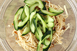 切干大根と胡瓜も加えて、切干大根をほぐすように混ぜ合わせて器に盛る。