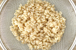 もち麦はたっぷりのお湯で柔らかくなるまで15分~20分ほどゆでたのち、ザルにあげて流水で冷まし、水気をしっかりと切る。