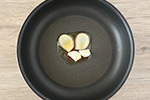 フライパンにごま油、にんにく、生姜を入れ弱火にかける。