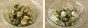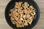大豆ミートがしっかりと(A)を吸ったことを確認し、青のりを加え混ぜ、片栗粉を加えて全体に絡ませる。