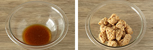 大豆ミートは表示通りに戻して水気をしっかりと絞る。