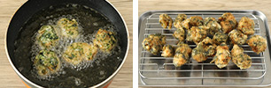 ボウルに(A)鍋に油を1㎝ほど入れ、170℃に熱して3)を入れ途中上下を返しながら表面がきつね色になるまで1~2分ほど加熱する。