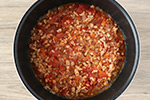 (A)を加えてよく混ぜ、ふつふつとしてきたら弱火にし、少しずらして蓋をして5分ほど煮込む。