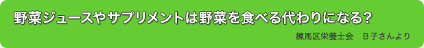 野菜を食べない代わりに野菜ジュースやサプリメントを飲んでいるという声をよく聞きますが・・・