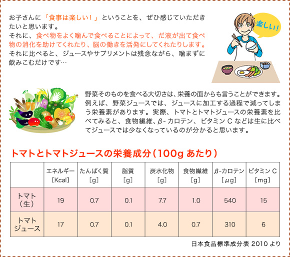 「栄養をしっかりとろう」と考えることは、すばらしいことですね!でも、できれば野菜の栄養は野菜そのものからとっていただきたいと思います。