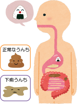そうすると、水分が十分に吸収される前にうんちがどんどん先に押し出されてしまうため、下痢になってしまうのです。