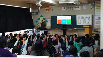 平成28年2月19日、久喜市立上内小学校のみなさんに、早ね・早起き・朝ごはんについてお話ししました。クイズがとても盛り上がりましたね。上内小学校では健康づくりにも力を入れており、校長先生ご自身も日頃から食事や運動に気をつけられているのだそう。学校全体で取り組む健康づくり、素敵です!
