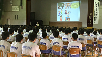 平成28年10月4日、富岡市立南中学校で、全校生徒の皆さんに生活リズムの重要性についてお話ししてきました。その日は10月だというのに真夏のような暑さ。会場の体育館も熱気でムンムンしていましたが、生徒の皆さんはそのような中、素晴らしい集中力を発揮して、話に耳を傾けていましたね!「早寝・早起き・朝ごはん」で、これからも充実した学校生活を送ってくださいね。