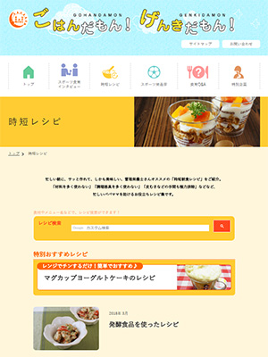 食育情報サイト「ごはんだもん!げんきだもん!」“時短レシピ”をご参照ください