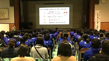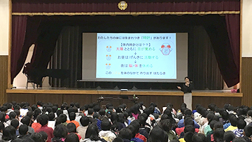 2018年12月6日に、小学生の5.6年生合同の食育授業を行いました。 皆さん挨拶がとてもしっかりしていて、気持ちの良い時間となりました。 運動部に所属している生徒が多いとのこともあり、授業の最後にはさまざまな質問をいただきました! 質問があるということは、自分の生活を振り返り、把握できているという証です! これからも皆さんがすくすくと成長する姿を応援しております! とても寒い日だったのですが、大きなヒーターをご準備頂き、細部にわたりお気遣いいただきましてありがとうございました。