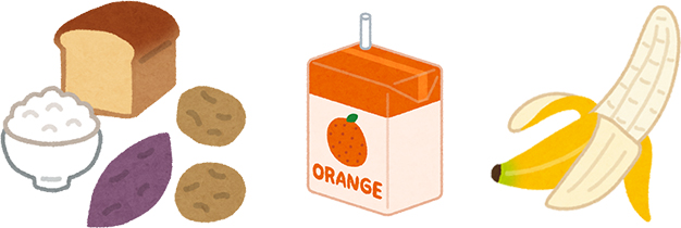食欲があまりない時はバナナや100%のフルーツジュース、ゼリーなども手軽に補給できるアイテムです。
