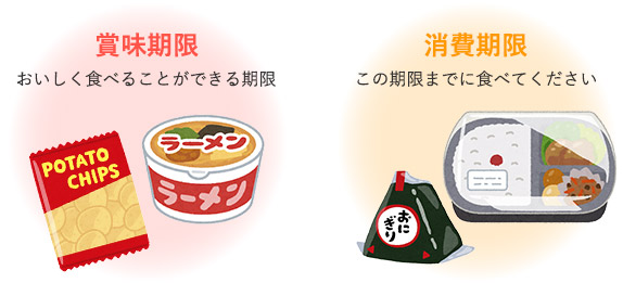 お店で見かける加工食品には「賞味期限」と書いてあるものの「消費期限」と書いてあるものがあります。