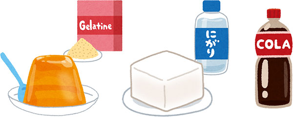 - ・ゼリーなどを固めるために使う“ゼラチン”や“寒天(テングサ)”は、「ゲル化剤」と呼ばれる食品添加物の仲間です。